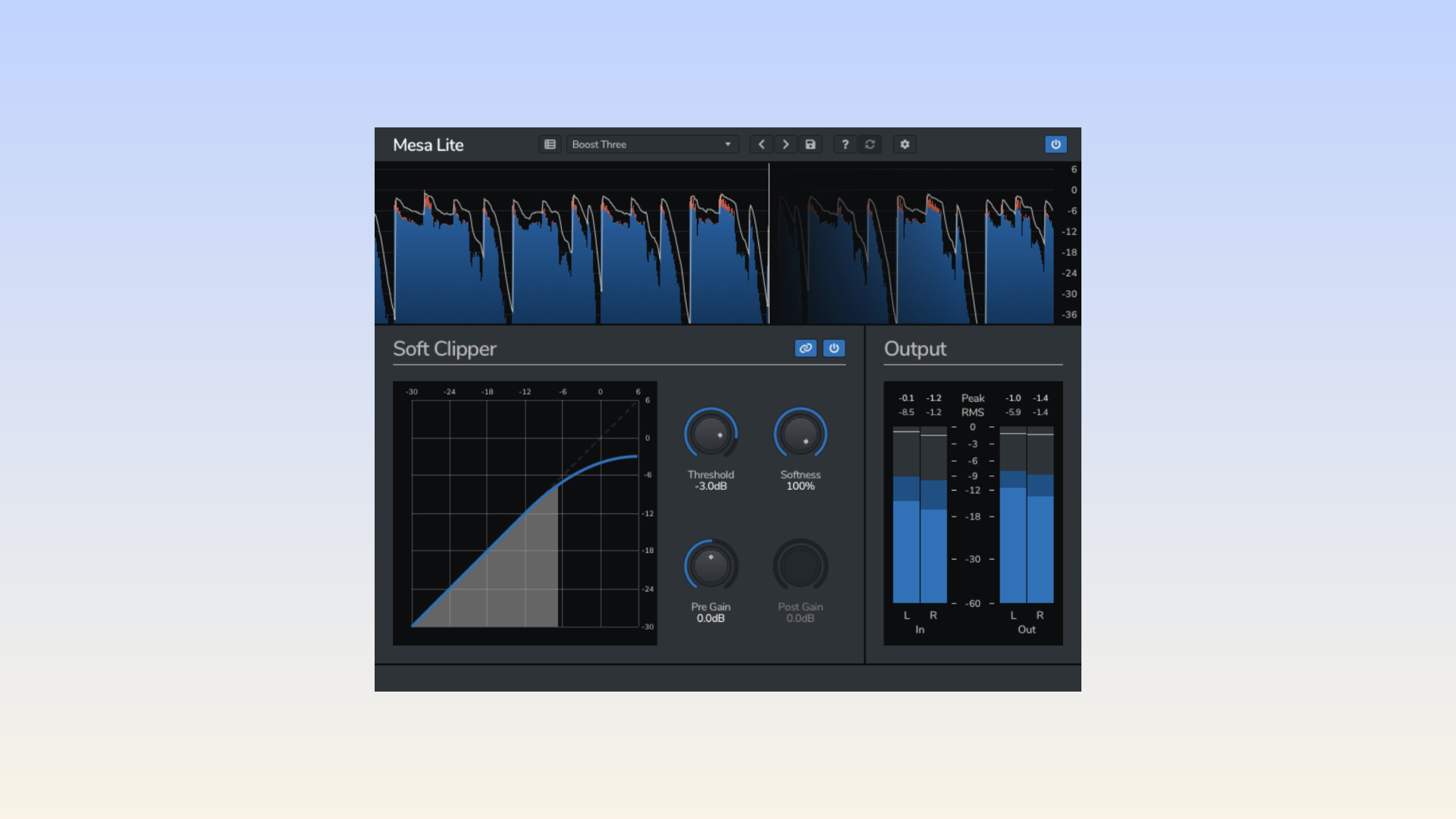 Instead of the harsh distortion you usually get with basic hard clippers, Mesa Lite offers a more natural, analog style rounding of the peaks. This makes your mix louder, fuller, and more cohesive without sounding crushed.
